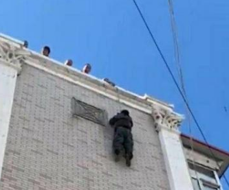 當(dāng)消防員趕到時,發(fā)現(xiàn)該名工人的安全繩已經(jīng)滑脫到了腋下位置,立刻告訴他不能用手拽繩索,只能使用雙手向下用力夾緊,才能保證不會掉下去,同時還在樓頂固定了著力點,拋下了兩根安全繩,供工人和參與營救的消防隊員來使用,經(jīng)過多名救援人員的共同努力,遇險工人慢慢從扶梯上走了下來。