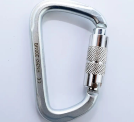第二種安全鉤是D型,它由鉤體、鎖臂兩部分構成,開合機構為彈簧舌自動復位式,鎖臂部分有扭轉自鎖和螺紋手鎖兩種保險結構設計。
